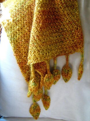 I made mine in a lovely autumnal yellow, but this wrap would be equally lovely in a more spring or summery green. Or imagine it in sugar maple red, bittersweet orange, grapevine burgundy, or rich russet.