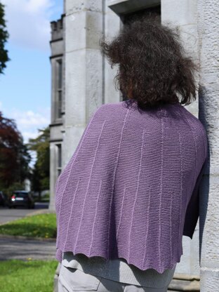 The pattern includes written instruction and charts (it is not necessary to read charts) for knitting a semi-circular shawl with sectors of garter stitch divided by mini-cables.