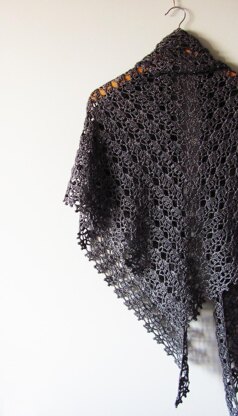 Astra is a triangular shawl worked top-down in an original flower stitch and decorated with picot border.