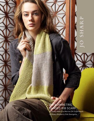 A soft pliable ribbed scarf with bands of contrasting yarns. Worked on large needles to create a soft pliable fabric.YARN: Jo Sharp Mulberry Silk Georgette & New Era Merino DK Superwash.