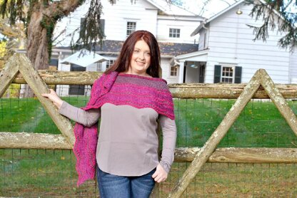 Finished Size 51" wide and 9 1/2" deep. Yarn Baah Aspen (75% merino, 15% silk, 10% cashmere; 330 yd [302 m]/3 1/2 oz [100 g]): aubergine (MC) 1 skein; amethyst (CC1), rosa (CC2), 1 skein each. Needles Sizes 6 (4 mm) and 7 (4.5 mm): 40" circular (cir). Adjust needle size if necessary to obtain the correct gauge. Notions Tapestry needle. Gauge 15 sts and 24 rows = 4" in St st on smaller needles.
