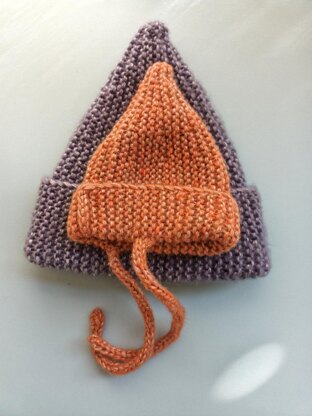 Description: This beanie is worked flat, side-to-side, starting with a cast-on of the fu l height of the hat. It is worked entirely in a garter stitch pattern. The hat's conical shape is created by knitting 8 identical wedges. Each wedge is formed using short rows (Wrap & Turns) to shape the pointy top of the crown. A slipped stitch at the beginning of every Right Side row creates a neat, finished edge for the brim (opening).