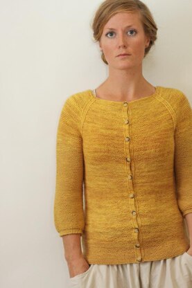 Audrey is a garter stitch cardigan knit from the top down and uses a seamless construction. It features ¾ length sleeves and all over garter stitch. Slip stitch ribbing runs along raglan shaping and the sides of the body to create an attractive false seam. This cardigan was designed to showcase hand dyed yarn and compliment the tonality and varying saturation of colour.