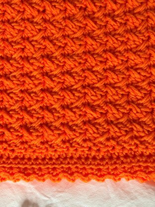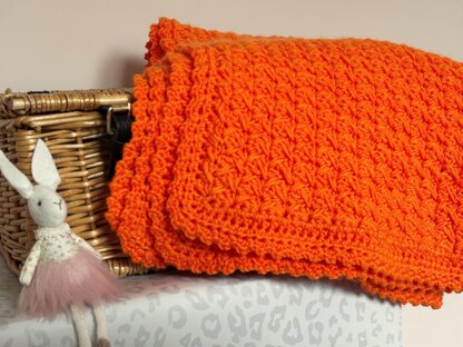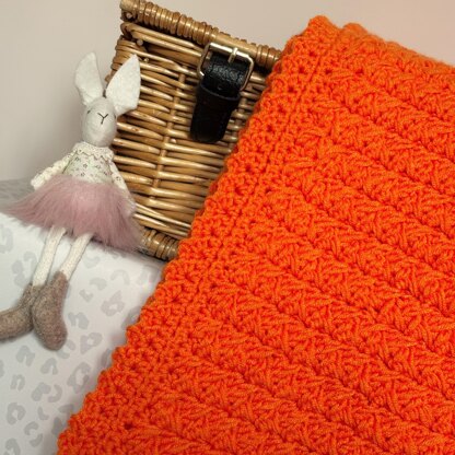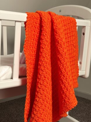 The blanket has a 1 row pattern repeat using only 3 stitches, double crochet, half treble and treble. The simple stitches give stunning results. It would make a fabulous new baby, baby shower gift or just to keep your new baby warm and cosy. The blanket is perfect for everyday walks in the pushchair or a ride in the car seat on the school run. Folded can be used as a cushion in the supermarket shopping trolley. The tactile texture makes this a brilliant sensory blanket for small hands to glide over