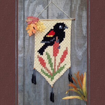 Using the popular technique C2C (Corner-to-Corner), this Banner includes both full Line-by-Line instructions and color Chart, along with optional Blackbird Feather Fringe!