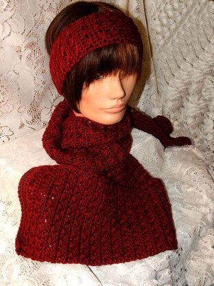 Skill Level: Easy Pattern includes scarf, fingerless mittens and headband.