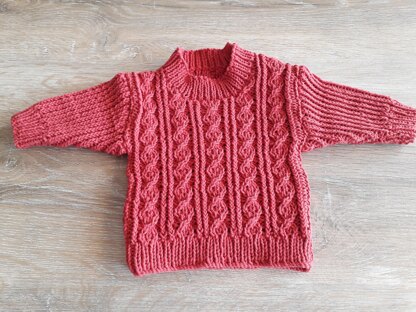 A beautiful patterned sweater for boys or girls, in readiness for those cooler days approaching. There is plenty of positive ease in the garment with finished sizes ranging from 16in to 27in (41cm to 48.5cm).