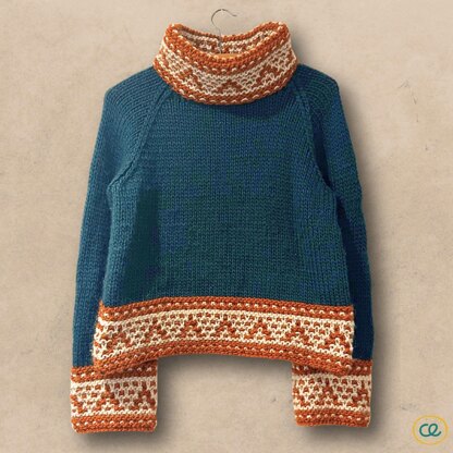 Each piece begins with the slip stitch mosaic panel which then works into plain stocking stitch. The neckline is picked up at the end and knit to double the length before being folded and slip stitched for a cosy double layer collar.