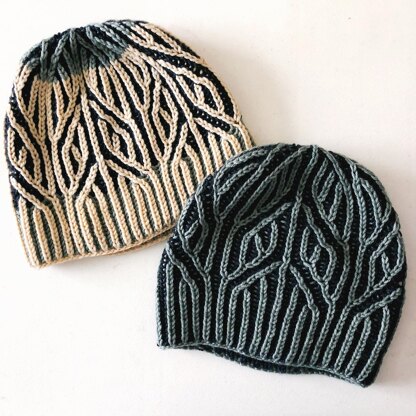 Feeling all the Autumn Vibes :: a color dipped hat with a textural arrow band, knit using the two-color brioche stitch.
