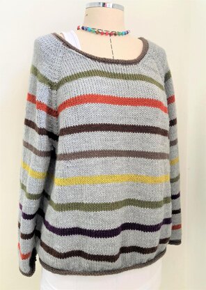 Oh I love stripes, I can never get enough. This pretty little jumper is worked seamless from the top down wtih i-Cord edging. The hemline is slightly gathered.