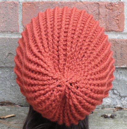 Materials: -A total of approximately 250 yards light worsted weight yarn. Example uses Lion Brand Wool Ease in Paprika. For best results, use a soft yarn with some drape for this hat. -2 small buttons (I used 5/8” buttons)