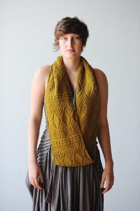 a seamless loop scarf with a reverible knit/purl pattern. can be worn doubled up as a cowl or in a long loose loop.