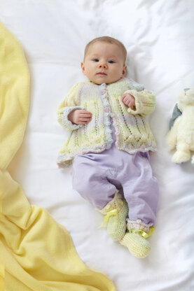 Babies Overtop, Cardigan, Matinee Jacket and Bootees in King Cole Cutie Pie DK - P6034 - Leaflet