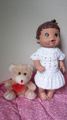 The dress fits a little loose on the 13" Cabbage patch doll. Pattern assumes you can do the front post and back post stitches