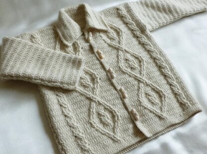 Unisex adorable baby set from 100% Luxurious Baby Alpaca with Aran design.