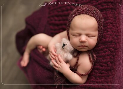 This is a pdf knitting pattern, written in English and using standard US terminology, for you to knit a 5" teddy bear photo prop to be used with supervision during your newborn to sitter photography session. It is not a toy.