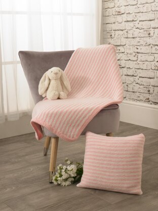 This Blanket an cushion is an easy knit made up of garter stitch with different coloured stripes and a simple yet effective picot border. Knit in either my choice of colourway or any you like to suit you!