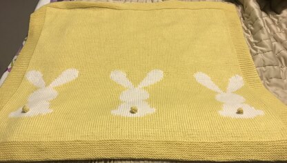 The tails of the rabbits are knitted separately as bobbles and then sewn onto the finished blanket.