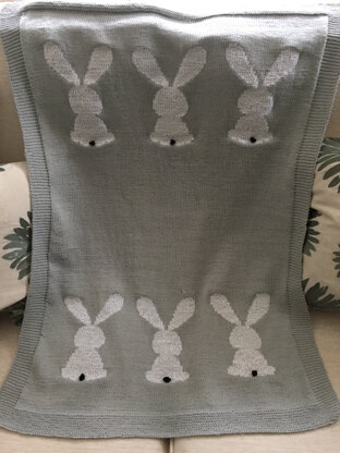 The blanket is decorated with six rabbits which are worked in duplicate stitch (but you can knit them using the intarsia method if you like). There are charts showing the rabbit design and how to place them on the blanket.