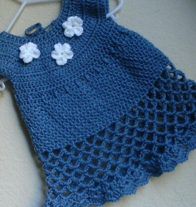 Lovely blue dress with white flowers. Works up quickly could be made over one weekend.