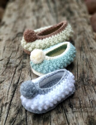 Baby bootie crochet pattern, baby slipper with knobblies and pom pom