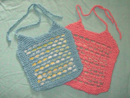 Horizontal ridges help prevent baby food from sliding down the bib into baby's lap.