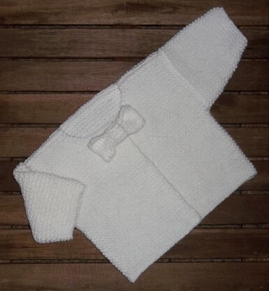 Designed this baby cardigan for my first grandchild. WIP!! We don’t yet know if it’s a boy or a girl and knitting decisions have been a small problem! So it had to be Buttons or Bows! The same pattern for both designs and the final decision to fasten with a button or a bow will be made on the day of delivery!! It’s a very easy and quick pattern to knit. Perfect for those new to knitting. If you can cast on, knit, increase, decrease and cast off, you can knit this pattern!! Knit in Garter Stitch (every row knit) on 4mm knitting needles, using just 100grams of Baby Soft D.K. Yarn for size 0-3 months. I’ve written the pattern to fit 5 sizes. 0-3m,3-6m,6-12m,1-2yrs,3-4yrs.