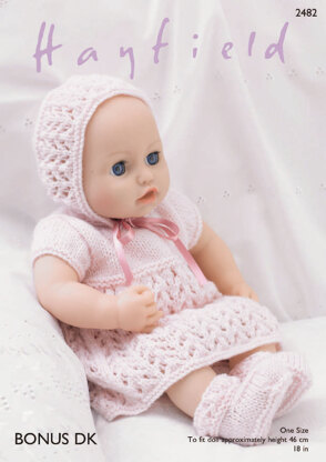 Baby Dolls Dress, Bonnet, Bootees & Pants in Hayfield Bonus DK - 2482 - Downloadable PDF