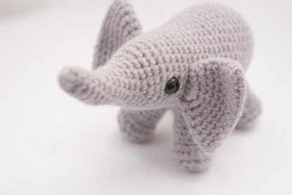 I can't resist watching baby elephants in nature documentaries, with their stubby trunks that they're just learning to use, and their oversized ears. When I designed this pattern I wanted to come up with something realistic, but still quite simple. I also wanted to reduce the amount of sewing, so the legs are worked as you go along. This means that you don't have to worry about where to position them, and they form a more natural shape with the body. The pattern is written using US crochet terms, and the list of abbreviations includes the UK alternatives.