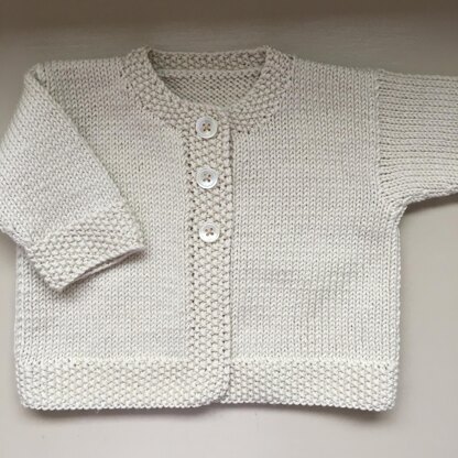A classic DK weight baby cardigan with elegant features and classic styling. Quick to knit, I have taken a basic cardigan shape and modified it to minimise seams and bulk of fabric.