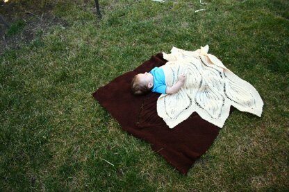 A baby version of my Falling Leaves Blanket! Lace, knit all in one. The points at the tops of the leaves are perfect for tucking around arms and feet and heads - this blanket wraps around children beautifully! The instructions are both written out.