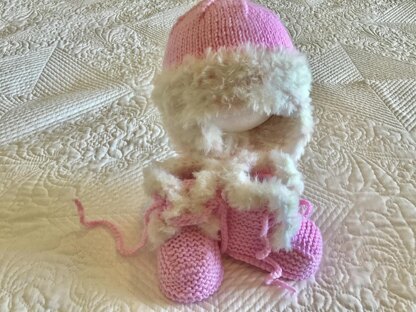 Soft and Warm Baby Fur Hat And Bootie Set Perfect For Winter - This pattern is made on two needles with back seam.
