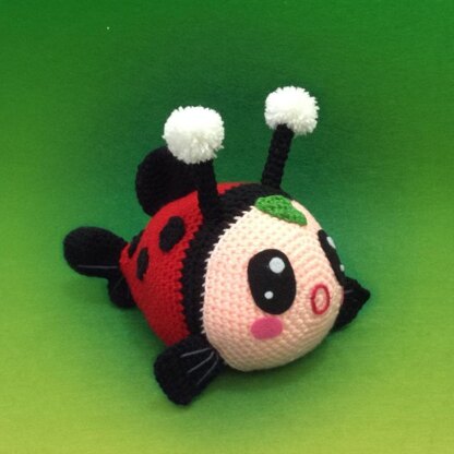 This is a DOWNLOADABLE PATTERN. Written in English using US terminology. This baby fish is wearing a ladybird costume. It is on its way to the Annual Under The Sea Festival.