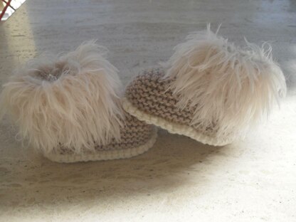 Knitting Pattern Baby Furry Booties - This Pattern Is Completely Knitted in One Piece. Made On Two Needles Working From The Sole Upwards. It Makes Three Sizes of Booties 0 to 3, 3 to 6 and 6 to 9 Months.
