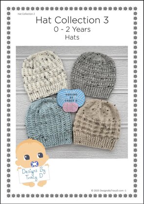 A Knitting Pattern for a collection of 4 Baby hats that need 100g of yarn for each size