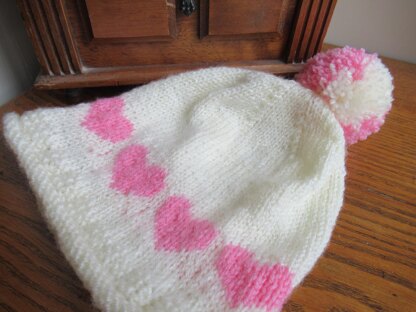 This beautiful little heart motifed beanie is knitted in soft double knitting (light worsted) yarn. Using the Fair Isle technique and only 2 colours, it is suitable for the more advanced beginner. The pattern comes in 3 sizes from 0 to 12 months.