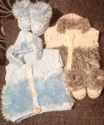 Baby Knitting Pattern GILLET & FUR BOOTS 3-6mths & 6-9mths