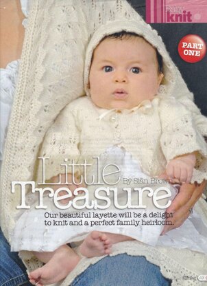 This is a pattern for a Baby Layette, originally published in Simply Knitting in two parts. It consists of four patterns: a shawl, a matinee jacket, booties and a bonnet. The shawl has a textured stitch as the main, with a lace border and leaf lace edging. The jacket has the same textured stitch as the shawl, with the same lace stitch. The booties have the lace stitch and stocking stitch, the bonnet has the same combination of lace stitch and textured stitch. You will need: shawl: 11 x 25 gm balls, jacket: 3 x balls, booties: 1 x ball, bonnet:1 x ball. Photos Simply Knitting