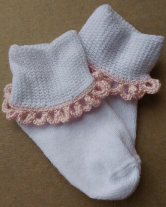 Crocheted ruffle for baby girl sock.
