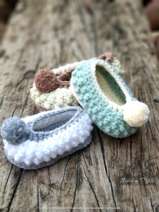 Instant download pdf CROCHET PATTERN for Baby Girl Slipper. This baby booties crochet pattern has 4 sizes 0-12 months, perfect baby shower gift. This adorable baby shoe pattern will make your baby the talk of the town, also makes for the perfect expecting mom gift.