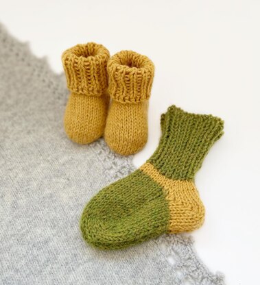 Simple basic toe-up baby socks ANEL are knitted in the round and have 4 SIZES: 0-3 months; 3-6months; 6-12months; 12-24months.