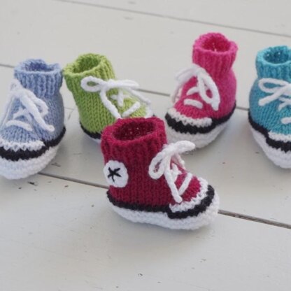 Adorable and easy trainer-style baby booties you can knit in a single evening!