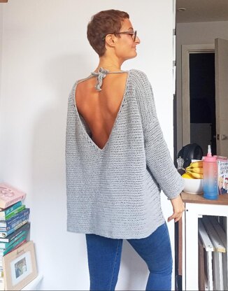 The backless crochet sweater is a business in the front, party in the back kind of vibe! It works great for cool summer nights, with shorts or jeans and is sure to turn heads.