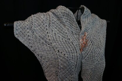 The scarf is worked as one continuous piece. The shawl style is worked in two pieces and joined using a kitchener stitch.