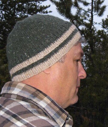 This casual unisex hat features staggered layers of ribbing intended to provide extra warmth over the top of the ears. The ribbed borders are worked separately and then joined together before working the body of the hat in stockinette.