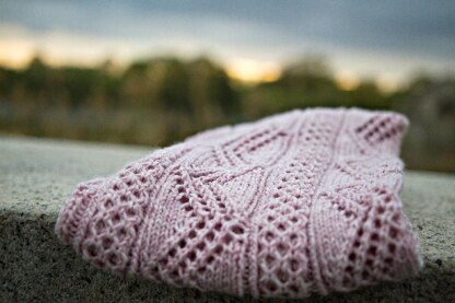 I created a scarf that would be effortless, comfortable, and would work well transitioning from Fall into Winter. To make this scarf both lightweight and warm, the lace is knit in a tube and then the ends joined together – you get floofy warmth without a whole lot of bulk.