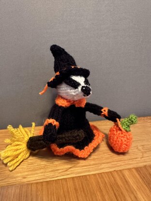 This is a pattern for a badger dressed as a pumpkin; a lady badger dressed as a witch; a large pumpkin and a small pumpkin. They can all be stuffed and used as ornaments or toys. Both badgers and the large pumpkin can also be used to cover Ferrero Rocher/Lindor type chocolate sweets.