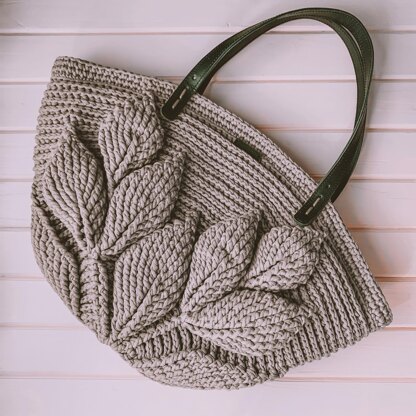 This crochet pattern contains instruction with step-by-step on how to make bag with leaves.