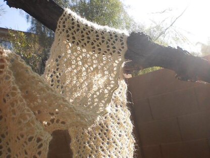 This lacy scarf pattern was inspired by the duel origins of one Bilbo Baggins, a burglar of Tolkien’s The Hobbit fame. While Mr. Baggins takes after his father’s side to a great degree, he has considerable Took blood in him, along with all the queer adventuresome qualities that come with it. Bagginses, you see, are respectable folk, dressing smartly, eating well, and-- most importantly-- staying at home. A Took, on the other hand, yearns for bigger things, wanting to see mountains and go places. Inspired by both sides of Bilbo’s genealogy, this pattern comes in two sizes. The cravat is for the Bagginses, emulating their sensibility and 19th-century dress style. The scarf is for the Tooks, harking back to adventures over mountains and into cold places, where you’ll need all the squishy alpaca warmth you can get!