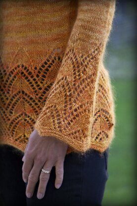 **Baju Bakau **is an elegant pullover (or tunic) finished with slightly flaring lacy bottom and cuffs, the same lovely lace motif as in the Bakau and Serangoon Shawls. The fit is tailored yet relaxed.